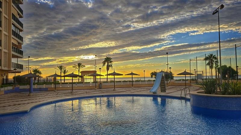 1ª Línea de Playa Vistas Laterales Extraordinarias al Mar y a la Ciudad 2 Habitaciones Dobles y 2 Baños Complejo Urbanístico y Garaje Cabina Cerrada Zona Racó!!!!